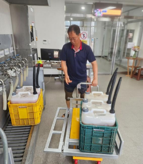 시는 농업인들이 좀 더 편리하게 미생물을 공급받을 수 있도록 자동분주후 이동식 테이블 리프트기를 이용하여 운반이 쉽게 했으며 아울러 출입구에 유도라인을 표시하여 공급 시 혼잡을 피할 수 있도록 환경을 정비했다.