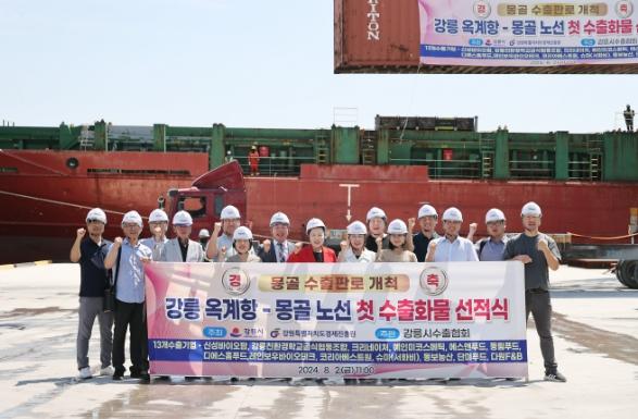 강릉시가 지난해 옥계항을 통해 러시아로의 수출을 시작한 데 이어 몽골 내 특판행사를 위한 도내 4개 시군의 기업 생산품을 선적하며, 강원특별자치도를 대표하는 항만 복합물류 중심 경제도시로의 도약을 준비한다.