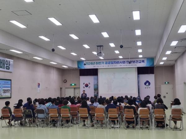 군산시는 2일 시청 민방위 상황실에서 2024년 하반기 공공근로 및 지역공동체일자리 사업 참여자들을 대상으로 안전보건교육을 실시했다.