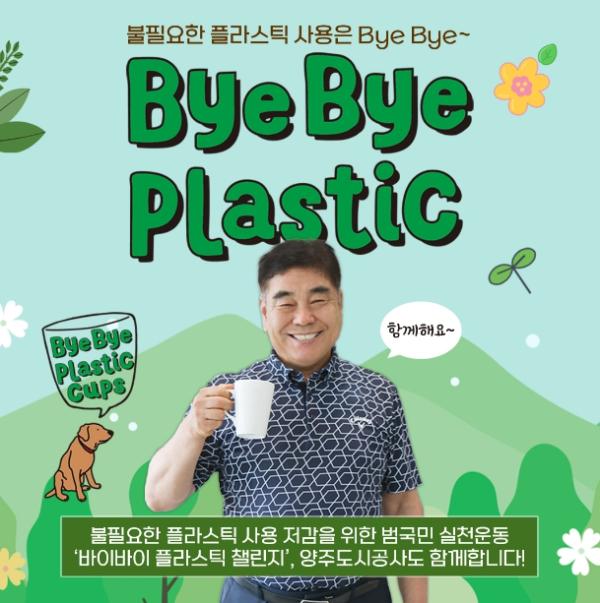 양주도시공사(사장 이흥규)가 2일 일상 속에서 불필요한 플라스틱의 소비를 줄이는‘바이바이 플라스틱(Bye Bye Plastic, BBP) 챌린지’에 동참한다고 밝혔다.