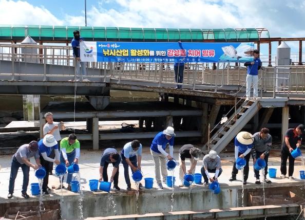 장흥군은 최근 낚시산업 활성화 및 해양생태환경 복원을 위해 회진면 노력항 일대에 감성돔 치어 20만 미를 방류했다.