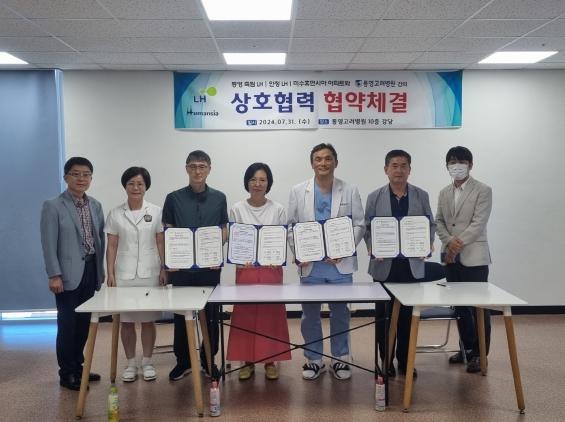 통영고려병원은 7월 31일, 죽림 LH, 안정 LH, 미수 휴먼시아 아파트와 양 기관의 의료 안전 문화 확산을 위한 진료 서비스 지원과 건강검진 조기시행 증진을 위한 업무협약(MOU)을 체결했다고 밝혔다.