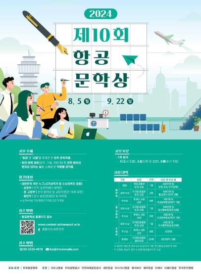 국토교통부와 한국항공협회는 “제10회 항공문학상 공모”를 실시한다.