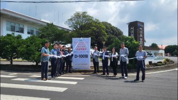 (사)제주국제감귤박람회조직위원회는 5일 서귀포농업기술센터에서 2024 제주국제감귤박람회 개최 D-100일 현판을 제막했다.