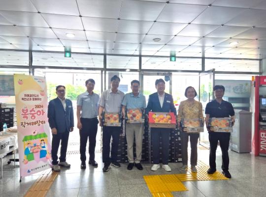 옥천군은 6일 부산광역시 동래구청 1층 민원실 입구에서 ‘향수 30리 옥천 복숭아’ 판촉 행사를 진행했다.