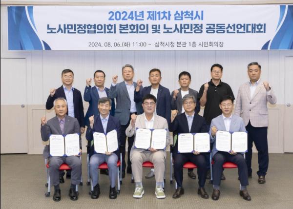 삼척시가 8월 6일 삼척시청 시민회의장에서 노·사·민·정 협의회 회의를 갖고 삼척형 상생·협력 일자리 사업의 성공적인 수행을 위한 ‘삼척시 노·사·민·정 공동선언문’을 발표하며 협력을 다짐했다.
