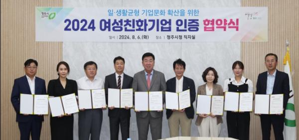 청주시는 6일 임시청사 직지실에서 여성친화기업으로 선정한 8개 기업과 인증 협약을 체결했다.