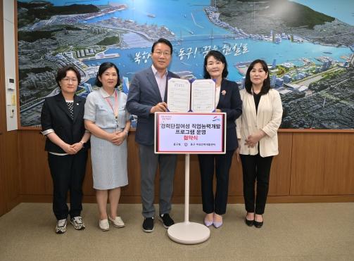 부산광역시 동구는 지난 5일 동구 여성인력개발센터와 경력단절여성 직업능력개발 프로그램 운영을 위한 업무협약을 체결했다.