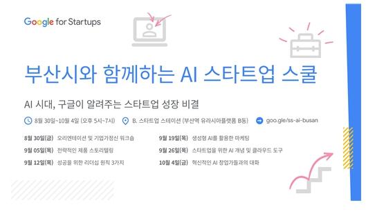 부산시는 구글(Google for Startups) '스타트업 스쿨(Startup School)'이 오는 8월 30일부터 인공지능(AI) 특화 교육프로그램으로 부산에서 진행된다고 밝혔다.