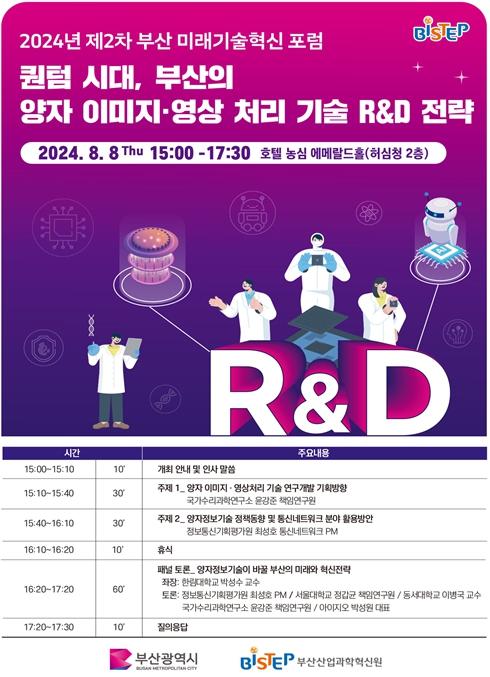 오늘 두 번째 포럼에서는 '퀀텀(양자) 시대, 부산의 양자 이미지·영상 처리 기술 연구개발(R·D) 전략'을 주제로 양자정보기술 분야를 적용·활용한 부산의 미래 신산업 육성 방안을 모색하고, 전문가들의 의견을 수렴할 예정이다.