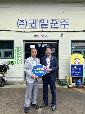 지난 6일 남원 출신 ㈜광일토건환경 박노일 대표(왼쪽)가 고향인 남원시에 작년에 이어 올해도 고향사랑기부금 500만원을 기탁했다.