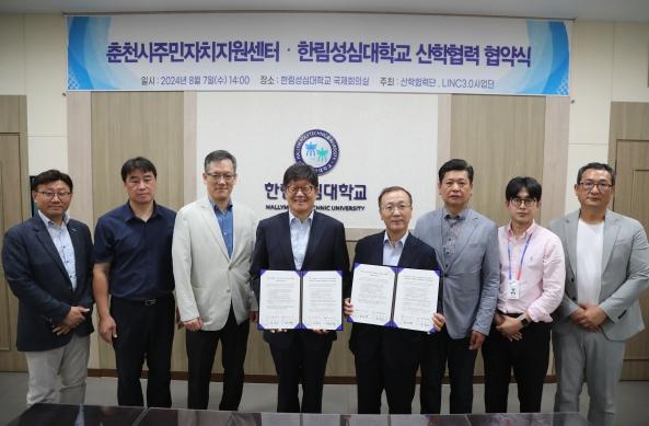 (재)춘천시주민자치지원센터와 한림성심대학교는 7일 14시 한림성심대학교 대학본부 국제회의실에서 양 기관의 지속적인 상호 교류와 저변 확대를 위한 업무협약을 체결했다.