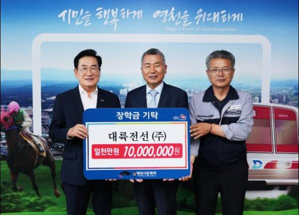 지난 7일 대륙전선 주식회사에서 1,000만 원의 장학금을 (재)영천시장학회에 기탁했다.
