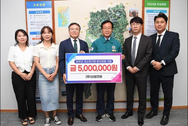 ㈜신성건설이 빠른 수해복구를 위해 완주군에 성금 500만 원을 전달했다.