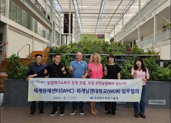 세계 최초로 농업대학과 연구기관이 결합한 와게닝겐 대학·리서치(WUR, Wageningen University and Research)를 방문해 정부 기관과 대학의 통합 운영 사례에 관해 설명을 듣고, 기술원이 상주 이전 후 지역대학과 협업할 방향에 대한 조언을 받았다.