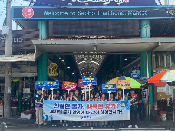 통영시는 지난 7일 물가모니터요원, 시장 상인회, 관계 공무원 등 민관합동으로 20여명이 참여해 한산대첩 축제기간 및 휴가철 대비 건전한 상거래 질서 확립을 위한 물가안정 캠페인을 서호시장 일대에서 추진했다.