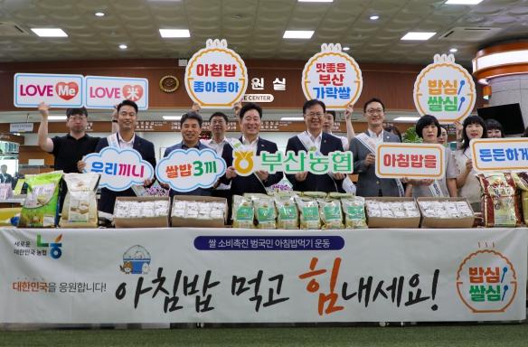 강서구는 8월 8일 구청 청사 1층 현관 로비에서 농협중앙회 부산본부와 아침밥 먹기 캠페인을 펼치고, 강서구민 아침밥 먹기 업무협약을 체결했다.