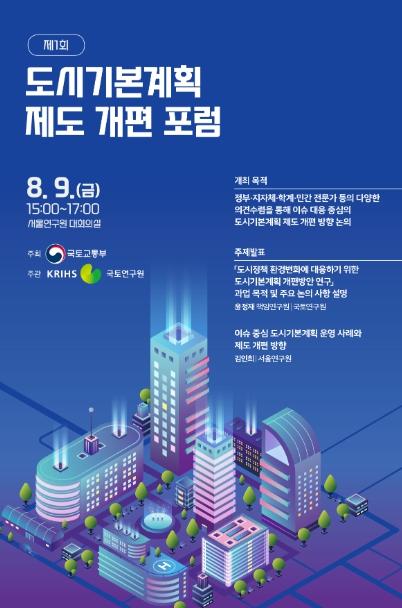 국토교통부는 8월 9일 오후 3시 서울연구원에서 '제1회 도시기본계획 제도 개편 포럼'을 개최한다.