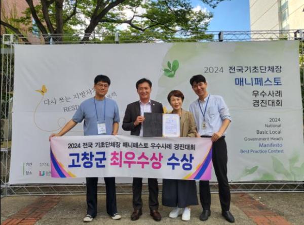 △매니페스토 경진대회 최우수상 수상=고창군이 전국 기초단체장 매니페스토 우수사례 경진대회에서 최우수상을 수상했다.