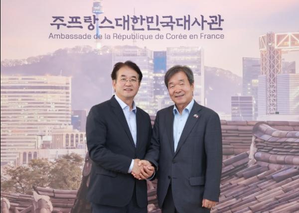이동환 고양특례시장은 8일(현지시간) 프랑스 파리에서 주프랑스 대한민국 대사관을 방문하여 최재철 주프랑스 대한민국 대사와 간담회를 갖고 고양경제자유구역 투자유치, 첨단산업육성, 고양시와 프랑스 간의 교류와 협력방안에 대해 논의했다.