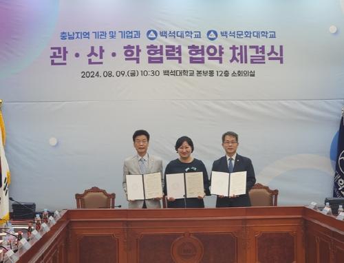 충남정보문화산업진흥원은 지난 8월 9일 백석대학교와 글로벌 혁신?융합인재 양성을 위한 업무협약을 체결했다고 밝혔다.