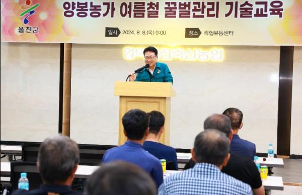 울진군은 지난 8일 영덕울진축협유통센터에서 지역 양봉농가 80명을 대상으로 여름철 꿀벌관리 기술교육을 실시했다.