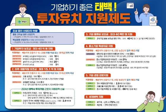 태백시는 우수기업 유치와 기업성장, 경영안정을 위해 강원특별자치도와 함께 다양한 기업 지원시책을 추진한다고 밝혔다.