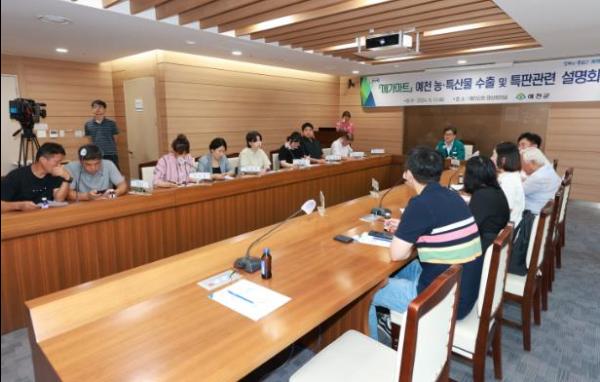 예천군이 13일 오전 10시 군청 4층 영상회의실에서 메가마트 예천 농특산물 수출 및 특판 관련 설명회를 개최하며 해외 마케팅 활동 지원에 나섰다.