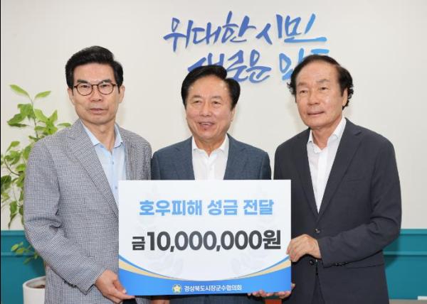 경상북도시장군수협의회는 지난 7월 집중호우로 큰 피해를 입은 안동시 주민들을 돕기 위해 성금 1천만 원을 안동시에 전달했다고 밝혔다.