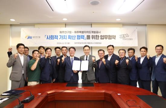 제주개발공사와 제주연구원은 ‘사회적 가치 확산 협력’을 위한 업무협약을 지난 12일 체결했다고 밝혔다.