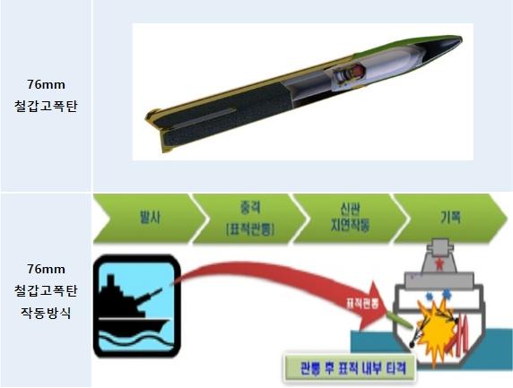 유효사거리 내 적 함정을 관통 후 폭발하여 함정 내부에 치명적인 손상을 줄 수 있는 76mm 철갑고폭탄의 양산계획이 승인되어, 윤영하급 고속함과 참수리급 고속정 76mm 함포 타격 능력을 향상시킬 것으로 기대된다.