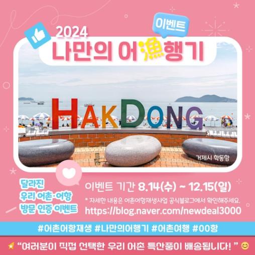 해양수산부는 8월 14일부터 12월 15일까지 대국민 방문 인증 이벤트 ‘2024 나만의 어(漁)행기’를 진행한다고 밝혔다.