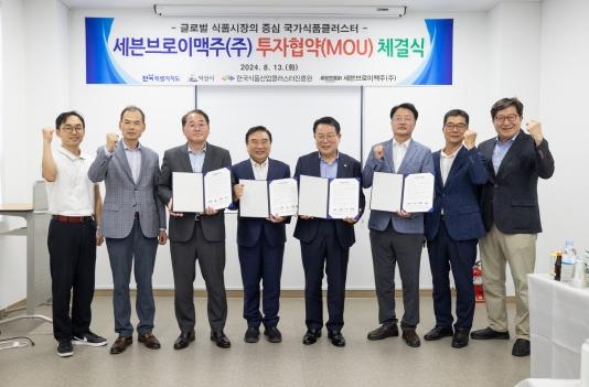 익산시가 세븐브로이맥주㈜와 국가식품클러스터 투자협약을 체결하고 식품시장을 선도할 경쟁력 확보에 나섰다.