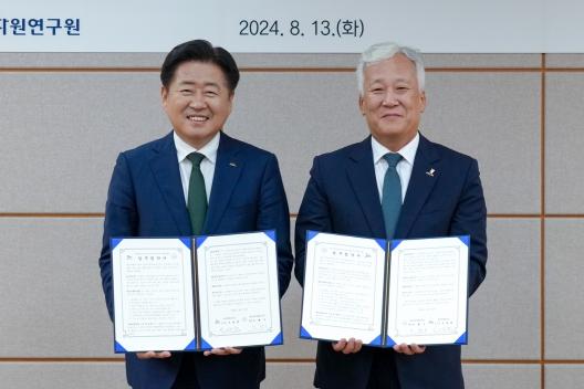 이날 오후 대전 유성구 소재 한국지질자원연구원에서 열린 협약식에서 양 기관은 용암해수 등 지하수 자원의 고도화와 산업적 활용 연구 등 7개 분야에 대한 협력을 약속했다.