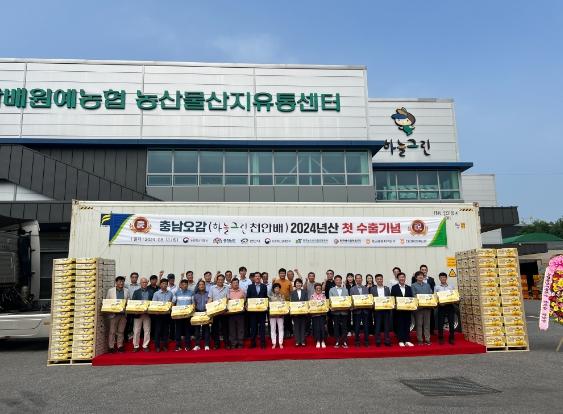천안지역 대표 농특산물인 ‘하늘그린 천안 배 수출 선적식’을 갖고 미국 수출을 본격 시작했다.