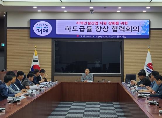 거제시는 8월 14일 거제시청 중회의실에서 ‘지역건설산업 지원 강화를 위한 하도급률 향상 협력회의’를 개최했다.