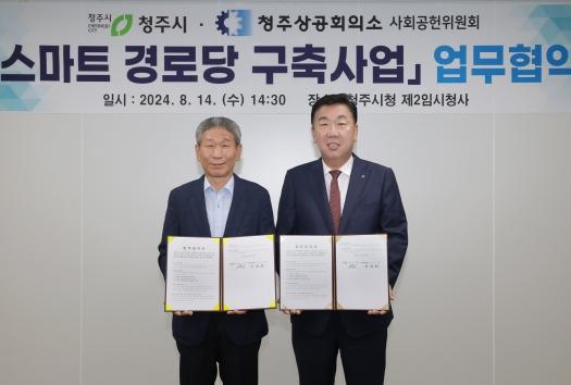 청주시는 14일 청주상공회의소와 업무협약을 체결하고 관내 경로당 50개소에 공공와이파이를 설치하는 내용의 스마트 경로당 구축 사업 추진한다고 밝혔다.