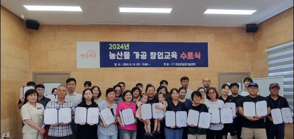 곡성군은 지난 6월 26일부터 8월 14일까지 총 34시간 8회에 걸쳐 농산물 가공·창업 교육을 진행, 총 32명이 교육을 수료했다고 전했다.