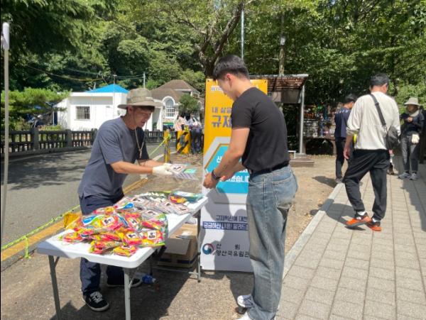 산림청 양산국유림관리소(소장 김병한)는 14일 김해시 대청계곡 일원에서 대청계곡을 찾은 국민들을 대상으로 산림청의 규제혁신 대표사례를 소개하고 산림분야의 불합리한 규제로 인한 불편사항에 대한 의견을 수렴하기 위하여 ‘찾아가는 규제혁신 현장지원센터’를 운영하고 안전?보건문화 확산 캠페인을 펼쳤다.