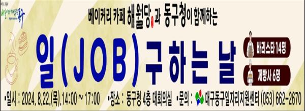 대구 동구청은 오는 22일 오후 2시, 구청 4층 대회의실에서 ㈜해월당과 함께하는 다(多)잡(Job)데이 행사를 개최한다