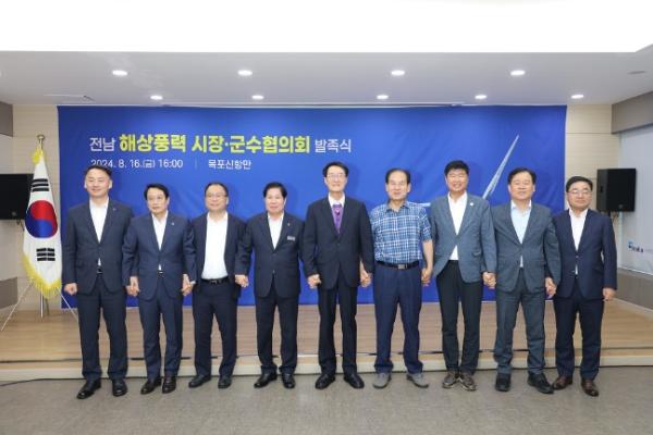 전남 해상풍력 시장·군수협의회 발족식이 8월 16일 지자체장, 관계 공무원 등 50여 명이 참석한 가운데 목포신항만㈜ 회의실에서 개최됐다.