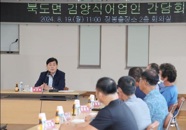 옹진군은 지난 19일 북도면과 영흥면에서 김양식 어업인 등을 대상으로'북도·영흥면 김양식어업인 간담회'를 개최했다고 밝혔다.