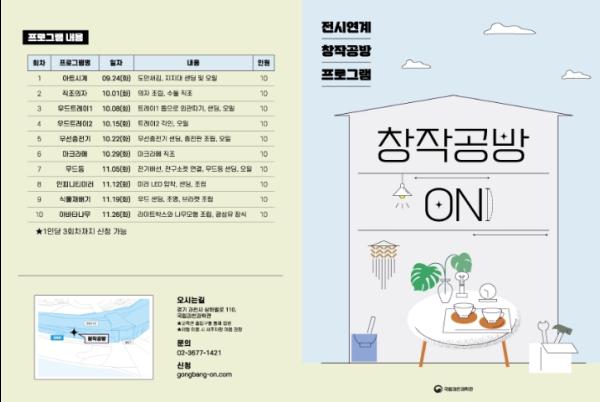 '창작공방 ON'은 가정에서 접하기 어려웠던 창작 장비들을 직접 다루면서 생활소품을 제작해 보는 프로그램이다. 이를 통해 생활 속 과학원리를 배우고 과학에 대한 흥미도 키우는 여성들만을 위한 특별 프로그램이다. 참가자들은 레이저 절단기, CNC조각기, 3차원 프린터 등 창작공방이 보유한 전문장비들을 직접 이용해 자신만의 창작물을 디자인, 설계, 그리고 제작까지 하게 되는데, 이를 지원하기 위해 과학관 전문인력의 사전 교육도 이뤄진다.