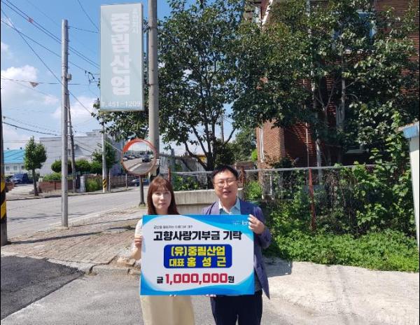 군산시는 서수면에 위치한 (유)중림산업의 홍성근 대표가 19일 고향사랑기부금 100만원을 기탁하고 군산시 발전에 응원을 보냈다고 밝혔다.