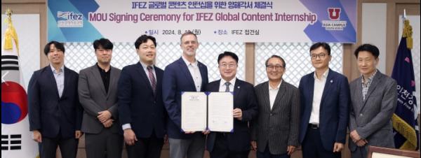 인천경제자유구역청은 지난 19일 유타대학교 아시아캠퍼스(대표 그레고리 힐)와 '글로벌 콘텐츠 인턴십을 위한 양해각서'를 체결했다고 밝혔다.