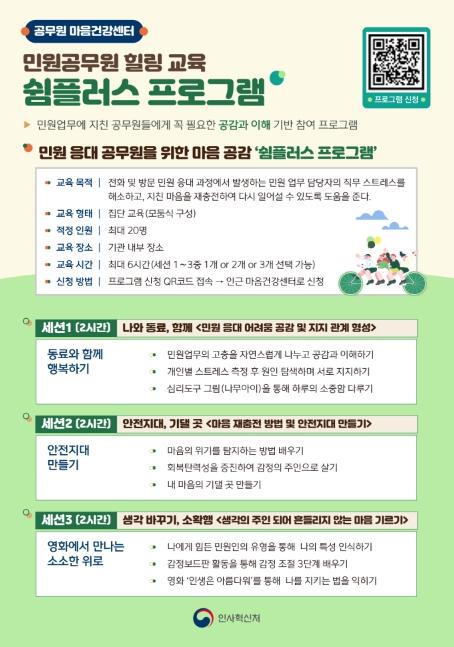 구혜리 재해보상정책담당관은 “민원인 응대 등 민원담당 및 저연차 공무원의 직무 스트레스 등으로 인한 심리적 고충을 지원하기 위한 프로그램을 다채롭게 운영 중”이라며 “공무원들이 더 쉽고 간편하게 마음건강센터를 이용할 수 있도록 노력하겠다”고 말했다.
