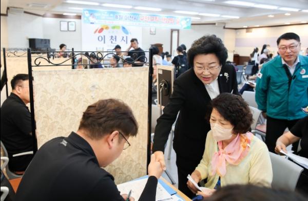 김경희 이천시장은 ‘8월 구인?구직 만남의 날’ 채용행사에 참석하여 “인력난과 취업난을 겪고 있는 구인·구직자들을 격려하고 일자리 창출과 지역경제 활성화를 위해 최선을 다하겠다”라고 말했다.