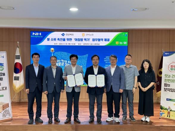 협약식에는 김학홍 경상북도 행정부지사와 임도곤 농협경제지주 경북본부장이 참석하여, 아침밥 먹는 건강한 식습관 형성과 쌀 및 쌀 가공식품 소비 촉진에 필요한 기관별 협력체계를 구축하기로 합의했다.