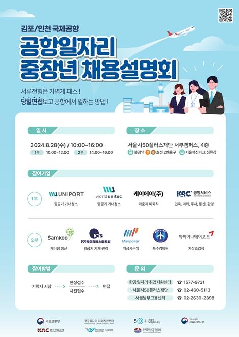 서울시50플러스재단과 항공일자리 취업지원센터가 중장년층에 대한 항공 산업 분야 채용을 활성화하기 위해 손을 맞잡았다. 두 기관은 오는 28일 서울시50플러스 서부캠퍼스에서 공항일자리 중장년 채용설명회를 공동 개최하며, 향후 공항 내 다양한 일자리에 중장년 인재를 연결하는 데 힘을 쏟을 예정이다.
