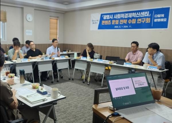 광명시는 광명시창업지원센터에서 오는 10월까지 광명시사회적경제혁신센터 콘텐츠 및 운영 전략을 논의하는 학습모임을 진행한다.